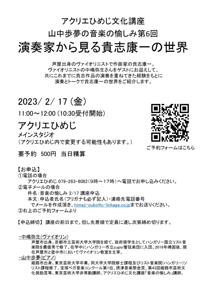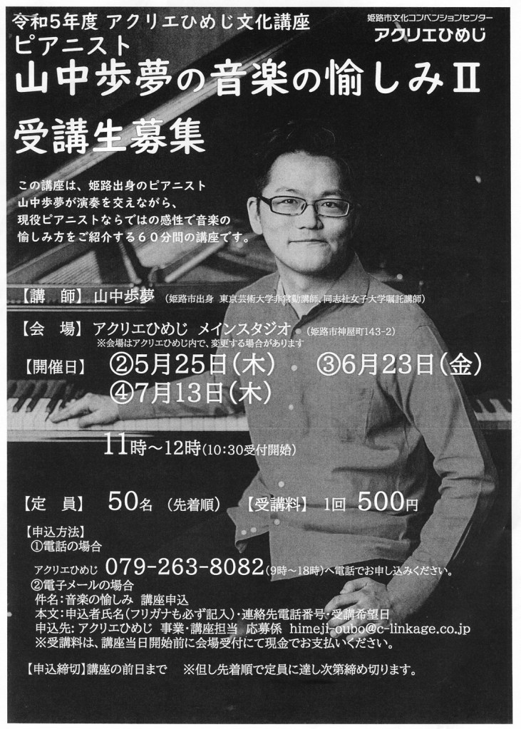 アクリエひめじ文化講座第6回「山中歩夢の音楽の愉しみⅡ」