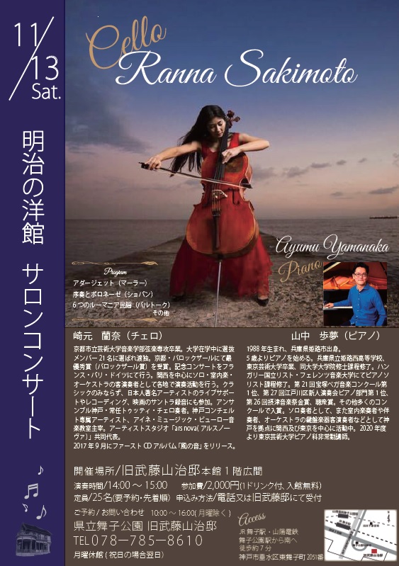 旧武藤山治邸「明治の洋館サロンコンサート・崎元蘭奈チェロコンサート」