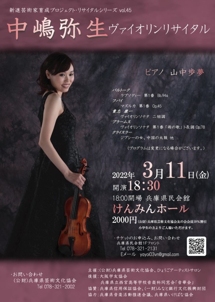 まもなくです!何度も共演させて頂いています中嶋弥生さんのヴァイオリンリサイタルが開催されます。ピアノを担当します。