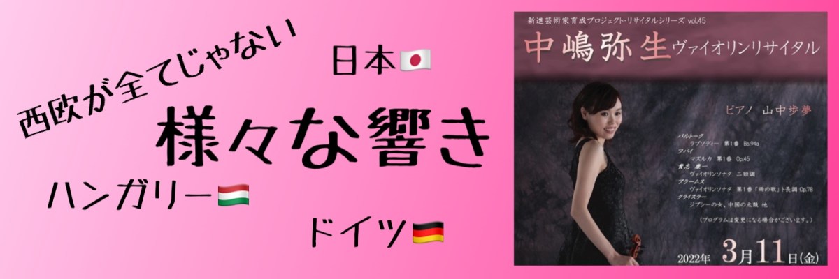 中嶋さんと共通の留学先であるハンガリーの響き(バルトーク・フバイ)、我々が生まれ育った日本の響き(貴志康一)、そして西側ヨーロッパのいわゆるクラシカルな響き(ブラームス)。